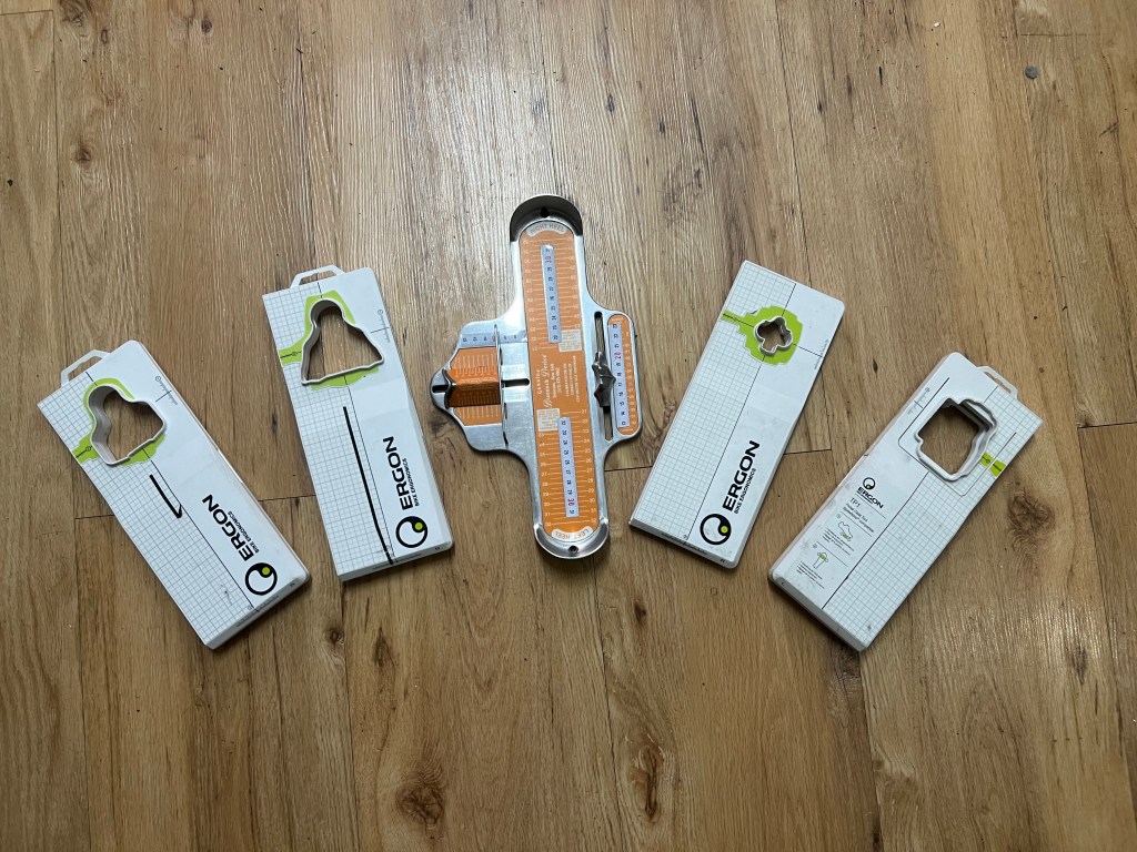 Pour cela nous utilisons ces deux outils en photo, un outils réalisé par nos soins, permettant également de mesurer le pied en longueur et en largeur (base d’un mesureur Brannock Device). Puis un outils Ergon, avec un outil par modèle de pédales. Grâce à ce combo nous pouvons réaliser un réglage de chaussures optimisé et anéantissant tout risque de blessure. Bien entendu lors de la réalisation de ces réglages nous restons à l’écoute de vos sensations et tout ajustement est possible, le corps humain n’est pas une simple machine.